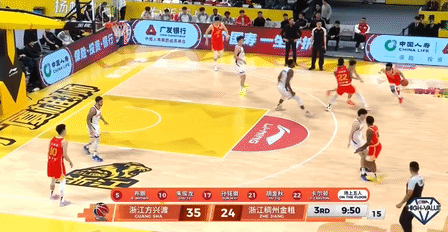 第三节,上来浙江进攻依旧低迷,广厦孙铭徽、胡金秋、桑普森相继得分领先至17分,浙江约克三分止血,紧跟广厦反击胡金秋暴扣回应,后半节上来双方持续进攻打铁,随后浙江陆文博、琼斯相继三分追至10分,节末收尾广厦塔克、赵嘉义立刻回应再度拉大分差,三节结束,广厦54-39浙江。