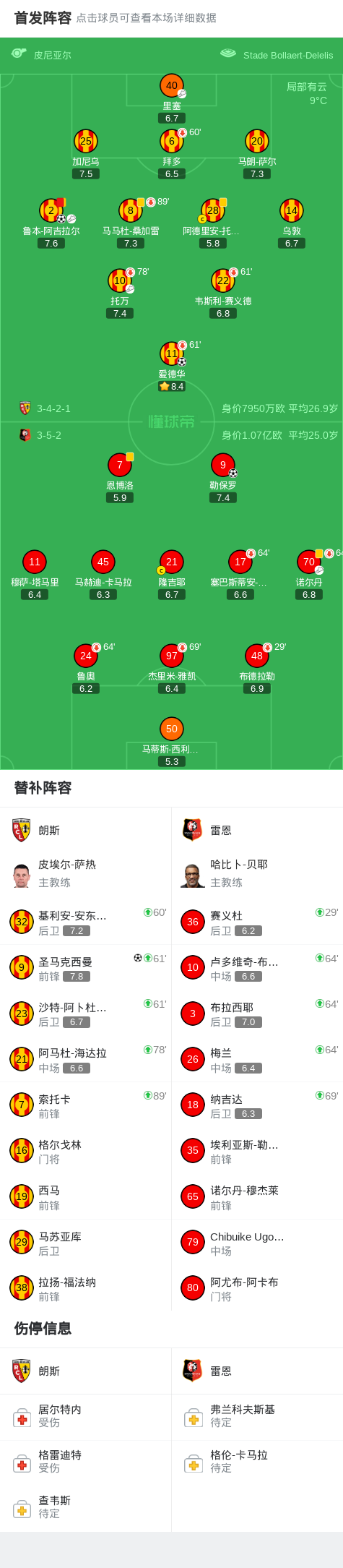 第54分钟,托万助攻鲁本-阿吉拉尔后点头球破门,朗斯2-1