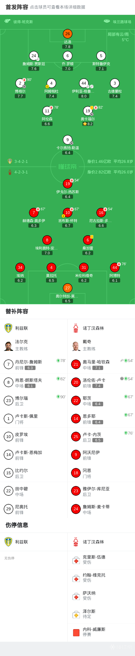 北京时间2月7日英格兰足球顶级联赛 联赛 第25轮,利兹联主场对阵诺丁汉森林。利兹联博格尔破门,奥卡福尔破门,卡尔弗特-勒温破门。诺丁汉森林洛伦佐-卢卡破门。最终比分利兹联 3-1 诺丁汉森林。