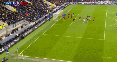 第42分钟,拉扬送点,恩迪亚耶主罚点球命中,埃弗顿1-0伯恩茅斯