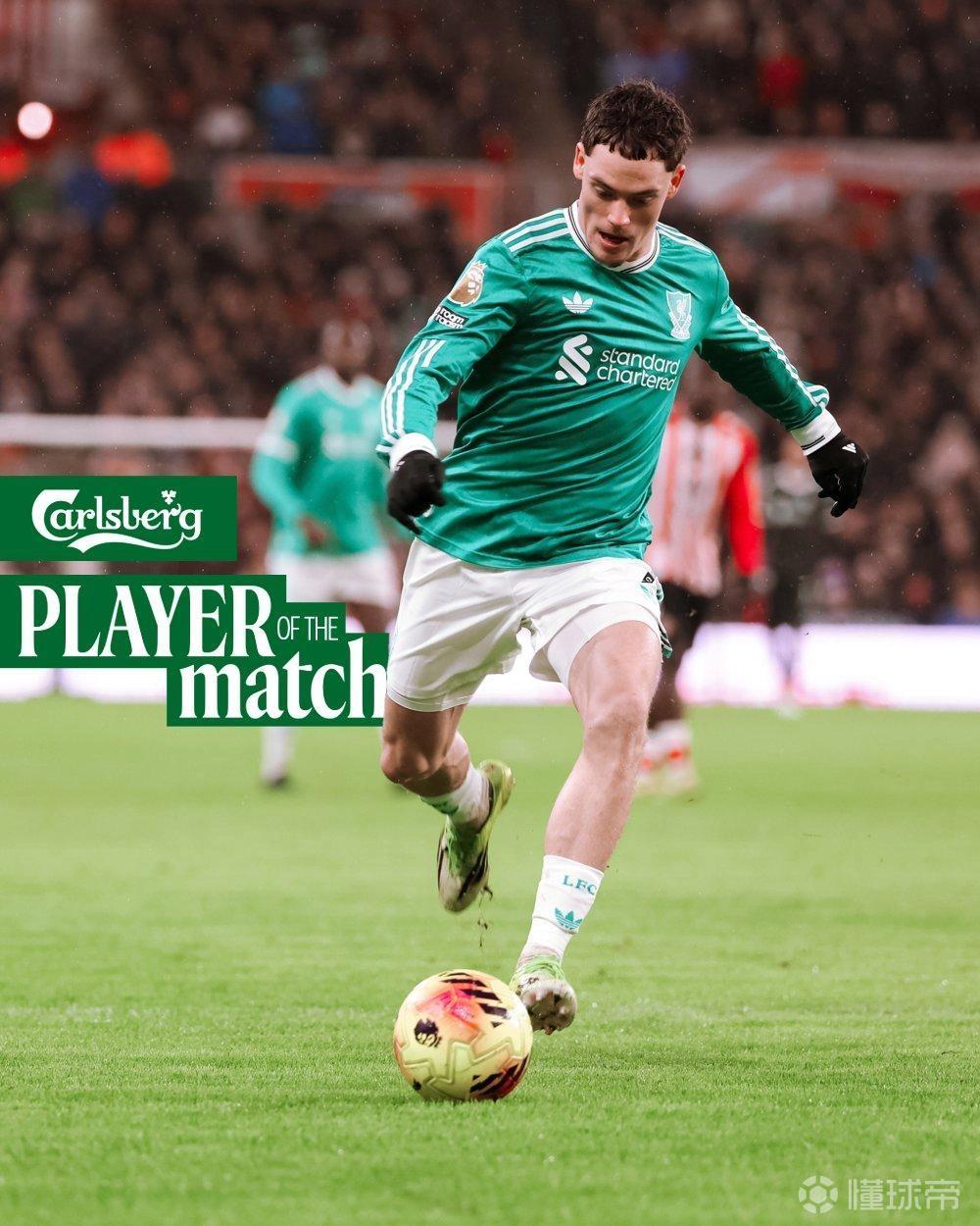 经过球迷评选,维尔茨力压进球功臣范戴克当选利物浦本场比赛最佳球员。