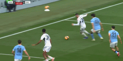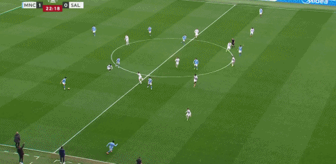 第36分钟,曼城角球开出,斯通斯前插抢点倒地